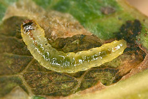 Nach Johansson et al. (1990) miniert die Raupe in Blättern der Silber-Pappel (Populus alba) und der Grau-Pappel (Populus x canescens), der Hybridform der Silberpappel mit der Zitterpappel (Populus tremula). Nieukerken et al. (2010: 23) nennen die beiden gleichen Pflanzen und geben noch einen interessanten Hinweis: "Hostplants: Populus alba L. and P. canescens (Aiton.) Sm., never on saplings. Univoltine, larvae from September to November, adults fl y from April to June."