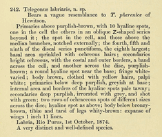 - Erstbeschreibung: Butler, A. G. (1877): On the Lepidoptera of the Amazons, collected by James W. H. Trail, Esq., during the years 1873 to 1875. — The Transactions of the Entomological Society of London for the Year 1877 (2): 105-156, pl. III. — Digitalisat auf biodiversitylibrary.org: [148]