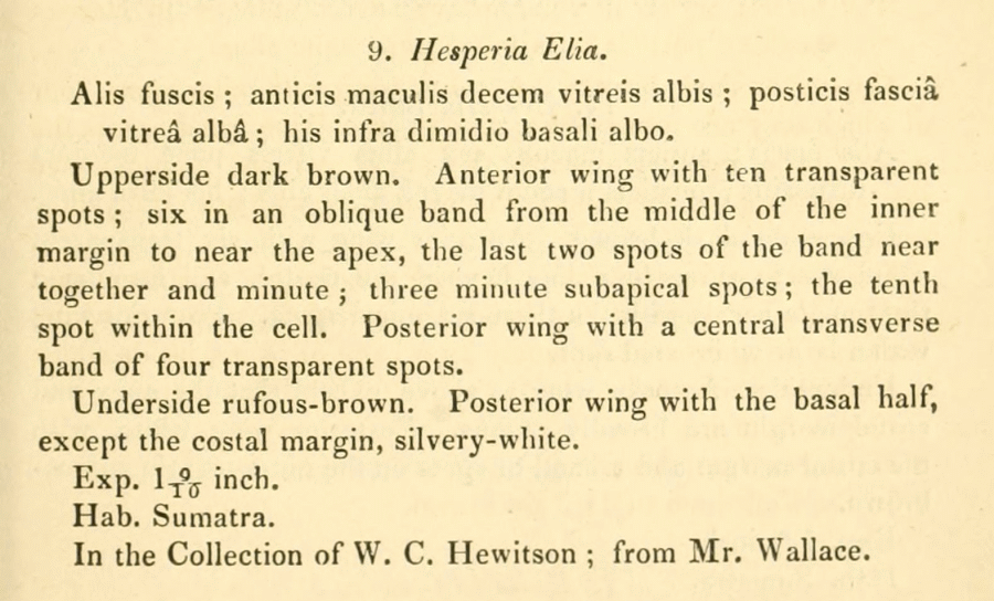 - Hesperia elia Hewitson, 1866 [Originalkombination]