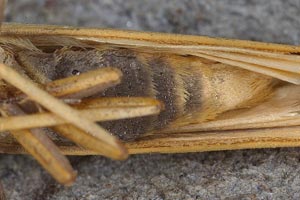 Ferner weist der Costalrand der Hinterflügelunterseite im Gegensatz zu E. pseudocomplana eine graue Beschuppung auf.