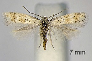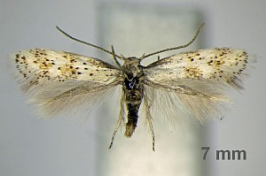6-10: zwei Exemplare, Deutschland, Thüringen, Kyffhäuser, Umg. Rottleben, 4. Juni 2014 (leg. & Fotos: Heidrun Melzer), det. Christian Kaiser [Forum 4-10]. Die drei gezeigten Falter (Bild 4-10) haben eine Flügelspannweite von 7,05 bis 7,43 mm.