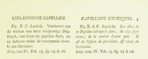 Nur der „Naamwyzer van de dag- en nagt-kapellen“ – im Band 1 der "uitlandsche kapellen" die Seiten 151-155 – ist maßgeblich für das Erscheinungsjahr der Erstbeschreibung, weil dies der einzige binominale Teil des Bandes ist. Nach Hemming (1958: 41) wurden diese Seiten 1776 publiziert.