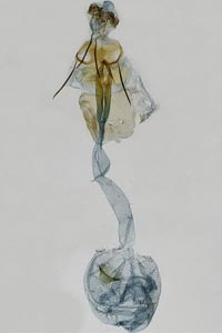 Hancock et al. (2015: 15) listeten auf: "Ovum. Laid in August - September on betony (Betonica officinalis), hemp-nettle ((Galeopsis spp.), yellow rattle (Rhinanthus minor) lousewort (Pedicularis sylvatica) and, particularly in the north, marsh lousewort (P. palustris), also reared from seedheads of teasel (Dipsacus fullonum) from two localities in Essex (K.P. Bland pers. comm.) and from New Forest (5 specimens in C.W. Mackworth-Pread collection, National Museum Scotland)."