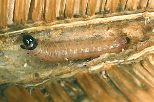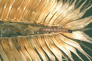 Die Raupe von E. marginana wurde von einer ganzen Reihe von Pflanzen genannt, wobei sie jeweils in den Blütenköpfen bzw. Samen-Behältern lebt.
