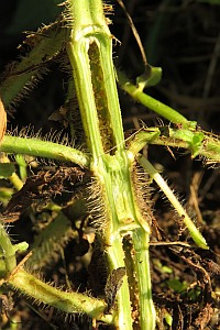 1: Belgien, Frasnes, Frass-Spuren in Stängel von Sumpf-Ziest (Stachys palustris) 6. August 2017 (leg., cult., det. durch Zucht & Foto Ruben Meert)