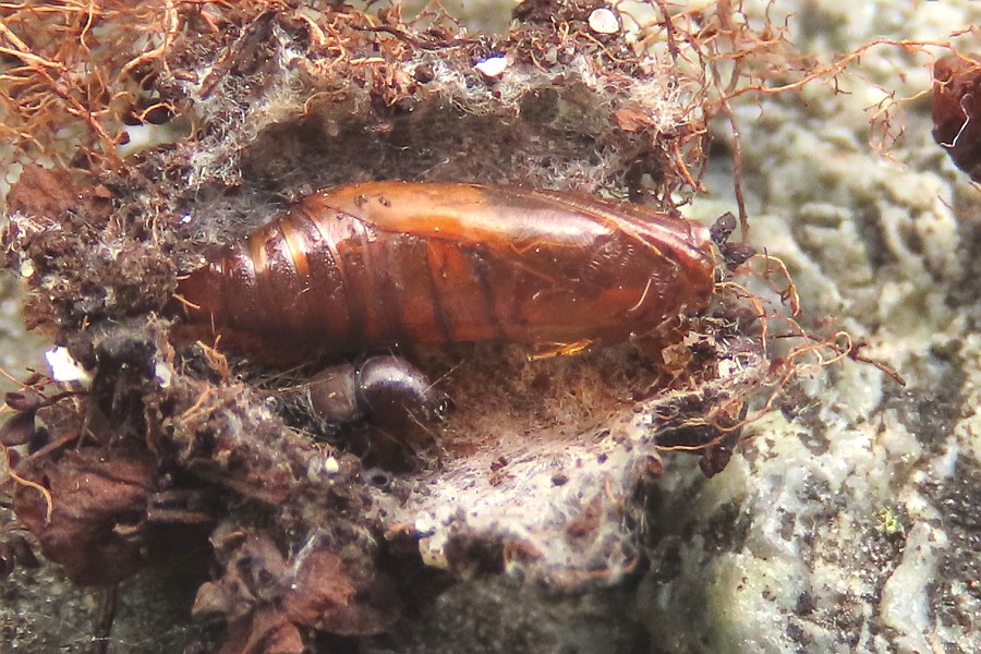 1-2: Spanien, Ribadesias, Asturias, 20 m, leg. Raupe an Erica multiflora 7. Juli 2024, ungeöffnetes Gespinst mit Kokon (1) bzw. Kokon mit Exuvie (2), nach Falterschlupf geöffnet, beide Fotos 4. August 2024 (leg., cult., det. & Fotos: Ruben Meert)