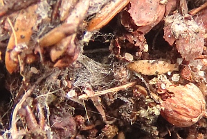1-4: Spanien, Ribadesias, Asturias, 20 m, Raupe aus Gespinst in der Bodenstreu unter Erica multiflora, 1: ungeöffnetes Gespinst mit kaum sichtbarer Raupe, 2: Gespinst zum Fotografieren der Raupe geöffnet, 3-4: Raupe zum Fotografieren auf eine neutrale Unterlage gesetzt, alle Fotos 7. Juli 2024 (leg., cult., det. & Fotos: Ruben Meert)