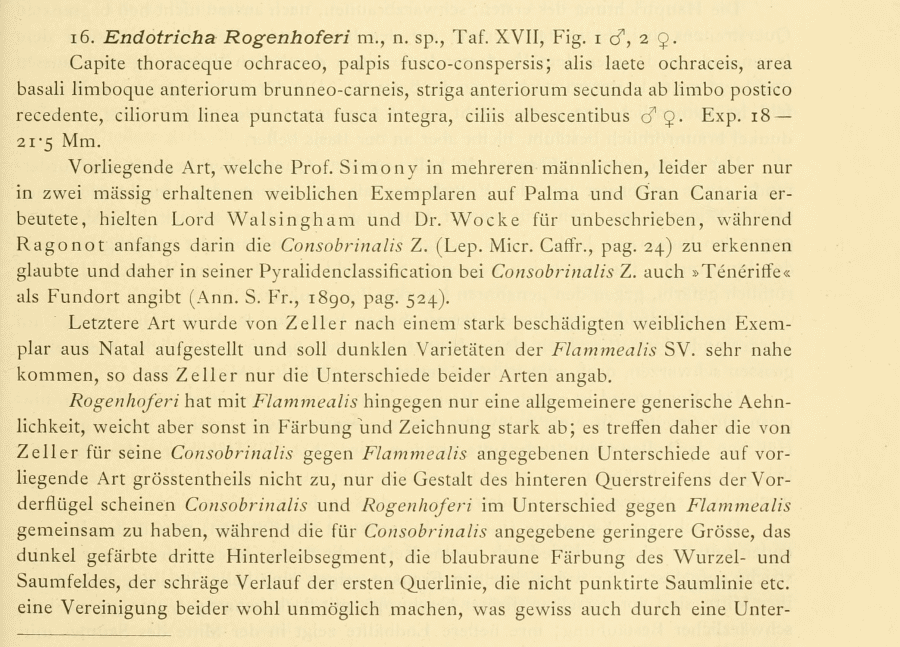 - Erstbeschreibung: Rebel, H. (1892): Beitrag zur Microlepidopterenfauna des canarischen Archipels. — Annalen des k. k. naturhistorischen Hofmuseums 7 (3): 241-284 + pl. 17 [PDF auf www.biologiezentrum.at].