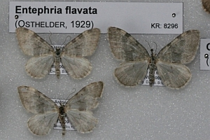 Entephria flavata und E. nobiliaria haben eine rein weiss-gelblich beschuppte Stirn, lassen sich also mit einem Blick von vorne oben auf den Kopf gut von den anderen Arten der Gattung Entephria abtrennen."