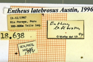 - Erstbeschreibung: Austin, G.T. (1997): Two new Entheus from Ecuador and Peru (Lepidoptera: Hesperiidae: Pyrginae). — Tropical Lepidoptera 8 (1): 19-32. [PDF auf journals.flvc.org]
