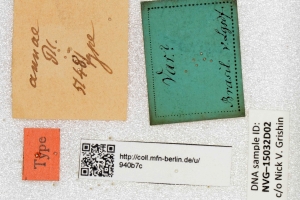 7-9: Syntypus ♀ von Phareas annae Plötz, 1883, Daten siehe Etiketten (fot.: Nick V. Grishin, Fotos bearbeitet: Michel Kettner), coll. Zoologisches Museum der Humboldt-Universität zu Berlin.