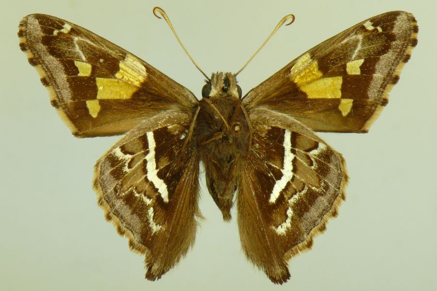 4-6: Syntypus ♂ von Epargyreus barisses var. argentea Mabille & Boullet, 1912, Daten siehe Etiketten (fot.: Nick V. Grishin, Fotos bearbeitet: Michel Kettner), coll. Muséum national d'histoire naturelle. Paris.