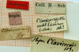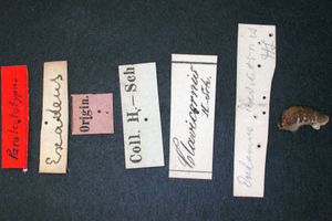 1-3: Syntypus ♂, Daten siehe Etiketten (fot.: Ernst Brockmann, Fotos bearbeitet: Michel Kettner), coll. Zoologisches Museum der Humboldt-Universität zu Berlin.
