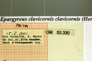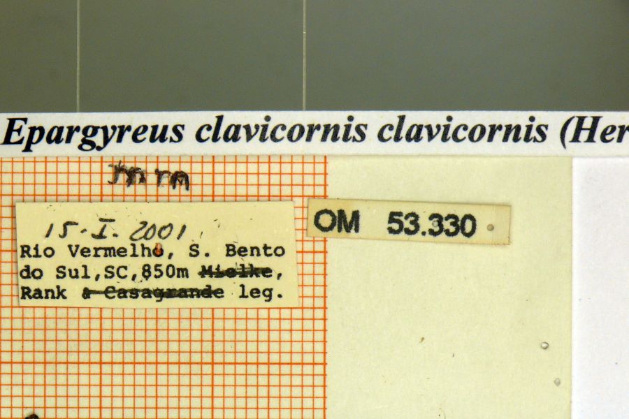 4-6: Syntypus ♂ von Epargyreus chota Evans, 1952, Daten siehe Etiketten (fot.: Nick V. Grishin, Fotos bearbeitet: Michel Kettner), © Images copyright Trustees Natural History Museum, used with permission.