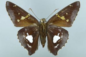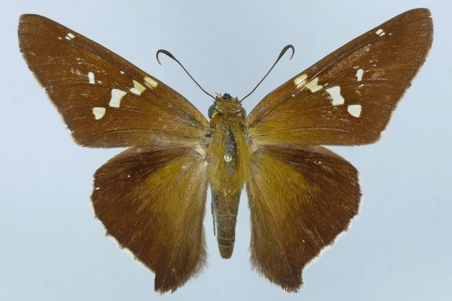 1-4: Syntypus ♂ von Epargyreus socus cama Evans, 1952, Daten siehe Etiketten (fot.: Nick V. Grishin, Fotos bearbeitet: Michel Kettner), © Images copyright Trustees Natural History Museum, used with permission.