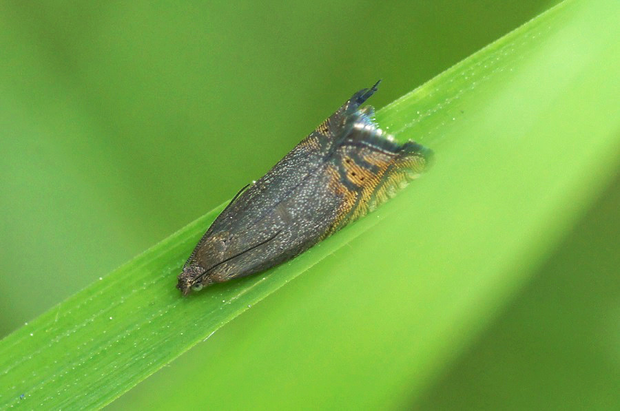 Nach den Ausführungen von Wakely (1955: 81-82) dürften alle Angaben zu Raupen an Samen falsch sein und auf Verwechslung mit Cydia nigricana beruhen. Er selbst formuliert zu seinen Beobachtungen aus Luccombe in England: "Imagines of Laspeyresia gemmiferana are not uncommon here in June and are easily disturbed from the herbage, also it is usual to take a dozen males to one female. There seems to have been a lot of confusion as to the feeding habits of the larvae. Meyrick and Barret both state that the larvae feed in the seed-pods, and I have collected the pods myself and also Mr. Lobb has twice sent me consignments of pods, but on each occasion all I succeeded in obtaining was a few larvae of L. nigricana Steph. An examination of the plants on my present visit showed that only a few undeveloped pods were present and that another month at least would have to elapse before any of the pods would be full. It was fairly obvious that the larvae must be full-fed in August so I startd looking to seeif there were any feeding marks in the stems. Suddenly I spotted that the terminal leaves on some plants were fastened together at the edges for the whole length of the leaf, and in these some tortricide larvae were feeding. [...] These larvae agreed with Meyrick's description of gemmiferana-"plate of 2 green-whitish with four dark dots," and I have little doubt that these are really this local species. On looking Lhomme's description of the larvae I found the following note: Chenille sur Lathyrus latifolius L., dans un pli longitudinal de la feuille", thus confirming this leaf-feeding habit of the larvaw, although he also records "dans les gousses". I hope to breed the moth in May to clinch the matter." Das Risiko eine Fehlbestimmung erscheint mir hier sehr gering.