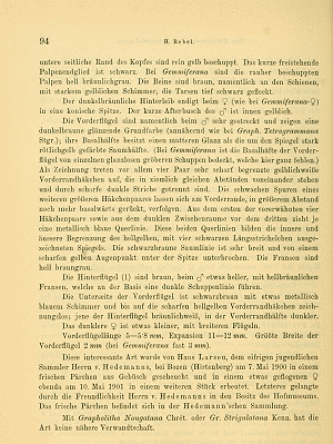 - Erstbeschreibung: Rebel, H. (1903): Neue Microheteroceren aus Österreich-Ungarn. — Verhandlungen der kaiserlich-königlichen zoologisch-botanischen Gesellschaft in Wien 53: 90-103.