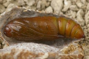 1: Puppenkokon, Italien, Friuli, Carso Triestino, 65 m, 3. Oktober 2013, Raupen an Schuppenkopf (Cephalaria leucantha), (leg., cult. & Fotos: Helmut Deutsch)Forum