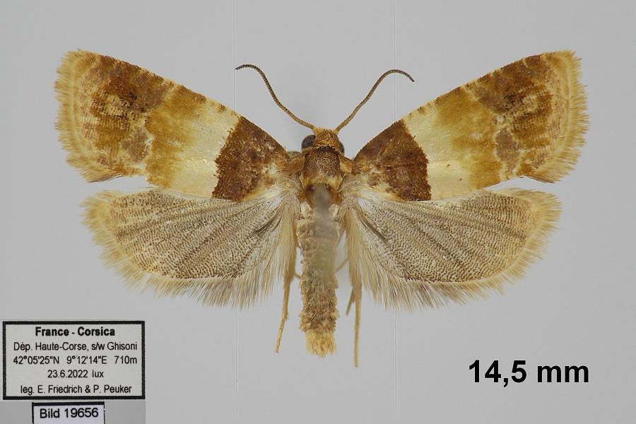 Und Jöst (1968: 71) hatte zur Pfalz geschrieben hatte: "Diesen unverkennbaren, 15—18 mm spannenden Kleinschmetterling, konnte ich am 9. und 10. August 1961 in der Nordpfalz bei Ebernburg am Licht fangen. In der mir zugänglichen Literatur finde ich keine sicheren Angaben über das Vorkommen in Deutschland."