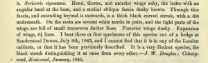 - Erstbeschreibung: Douglas, J. W. (1845): Descriptions of two new British Moths. — The Zoologist: A Popular Miscellany of Natural History 3: 844. London (John van Voorst).