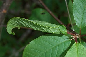 1-2: Fraßbilder an Traubenkirsche (Prunus padus):Deutschland, Sachsen, Leipzig, Auwald, 23. April 2008 (Freilandfotos: Heidrun Melzer)Forum