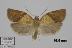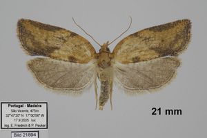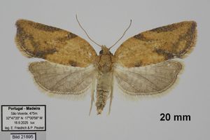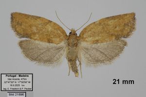 Gaona et al. (2020) melden den Erstnachweis der Art für Spanien, und zwar von ganz im Süden des Landes (Vejer de la Frontera, Provinz Cádiz): Dort wurden fünfmal Falter in Lichtfallen registriert, die frühesten am 6. März 2020, die bisher letzten am 1. September 2020. Gaona et al. (2020) wagen auch eine Übersicht über das bisherige Auftreten der Art in Europa: "Gran Bretaña, Irlanda, Francia, Países Bajos (Carter, 1984), Suecia (Svensson, 2009) y Azores (Portugal) (Hummer et al., 2009) cuentan con la presencia de este Tortricidae."