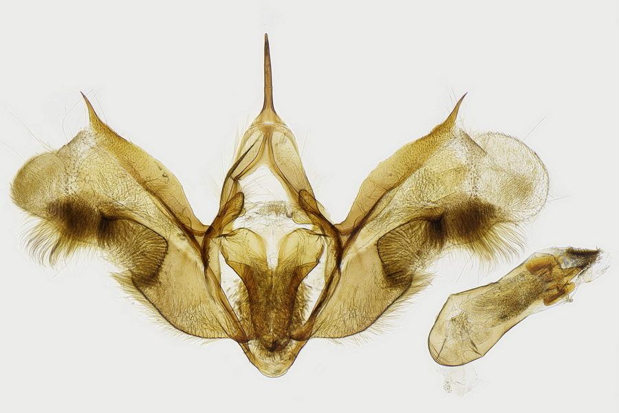 1: Deutschland, Thüringen, Weimar-Schöndorf, 13. Juni 1982, Tagfang (Belegfoto: Hartmuth Strutzberg)Forum 1-2: ♂, Daten siehe Etikett (Fotos: Egbert Friedrich), det. & coll. Rando Müller