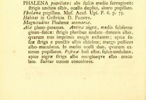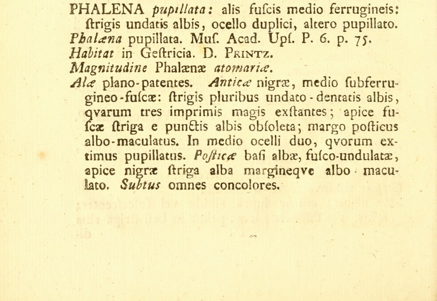 „pupilla Pupille, wegen der dunkeln, hellumrandeten Mittelpunkte der Vorderflügel.“
