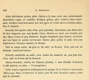 - Erstbeschreibung: Constant, A. (1884): Notes sur quelques Lépidoptères nouveaux. 1e partie. — Annales de la Société entomologique de France, 6e série 4 (3): 201-216 + pl. 9.