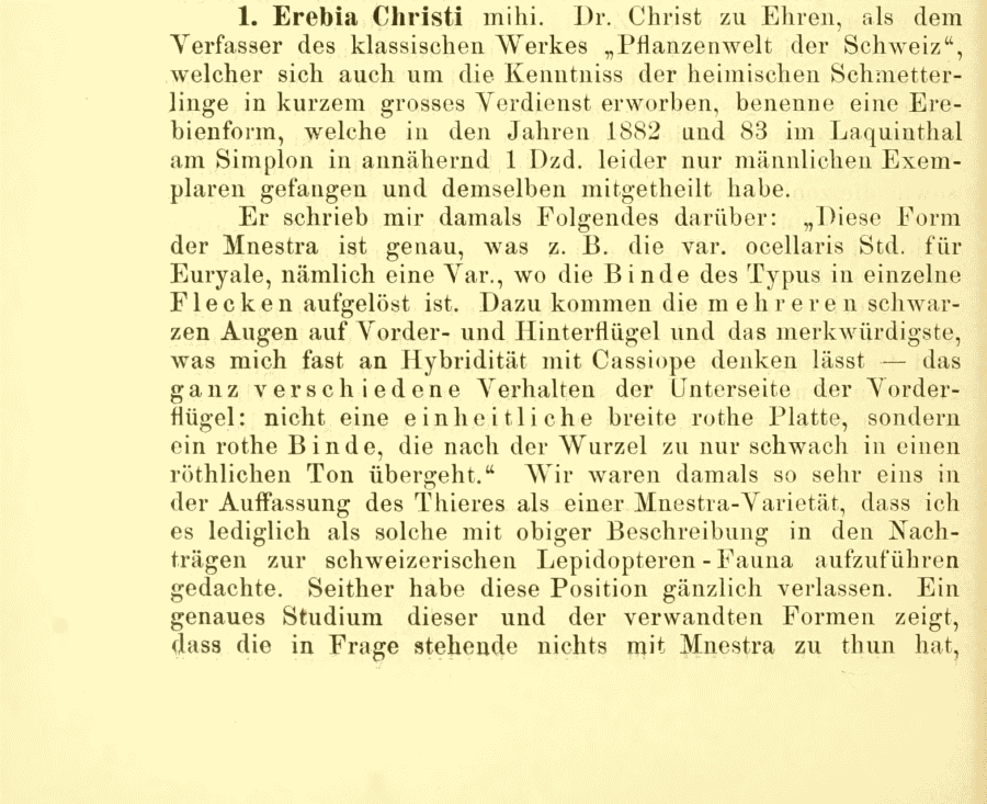 - Stubenrauch (1935): Biologie der Erebia Christi. — Mitteilungen der Münchner Entomologischen Gesellschaft 25: 9-26 + Taf. I-II [Digitalisat auf www.archive.org].