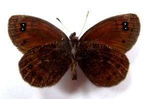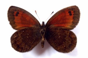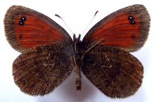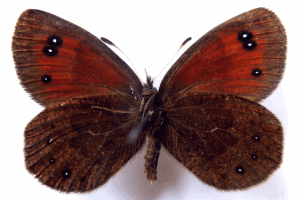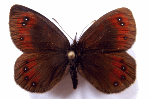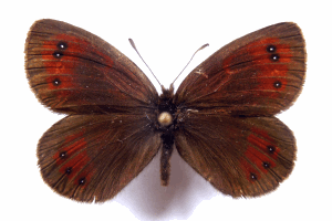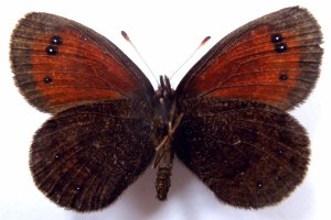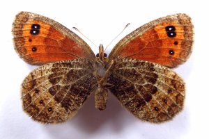 11-14: zwei Falter, jeweils Ober- und Unterseite, Frankreich, Hautes Pyréneés, Val d'Estaragne, 2100 m, 26. Juli 1973 (fot. & coll.: Mirko Wölfling)