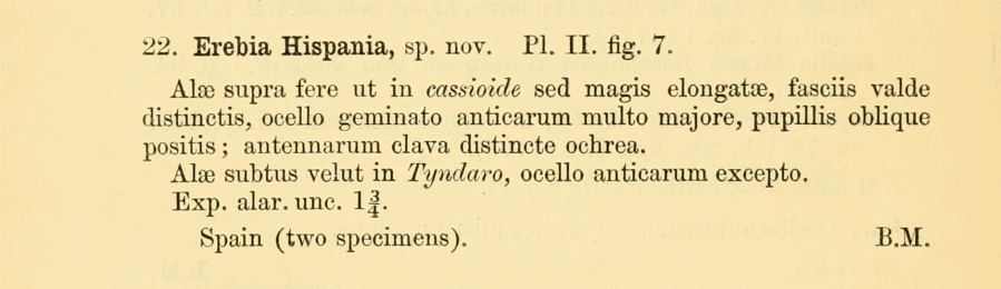 - Erstbeschreibung: Butler, A. G. (1868): Catalogue of Diurnal Lepidoptera of the Familiy Satyridae in the Collection of the British Museum. i-v + 1-211 + pl. I-V. London.