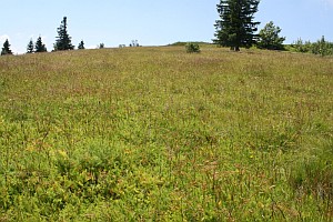 6: Larval- und Imaginalhabitat, extensiv beweideter Borstgrasrasen mit Deschampsia flexuosa: Deutschland, Baden-Württemberg, Mittlerer Talschwarzwald, Kandelgipfel, 1220 m, 16. Juli 2014 (Foto: Jürgen Hensle)