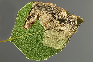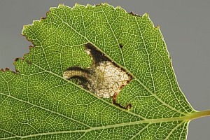 Die Raupe dieser Art miniert ausschließlich in Birkenblättern. Die [Artseite auf bladmineerders.nl] nennt außer Hänge- und Moor-Birke auch die niedrigwüchsige Strauch-Birke und die in Europa selten gepflanzte nordamerikanische Gelb-Birke.