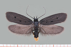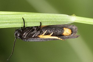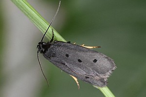 Kleine, dunkelgraue Art mit gelber Abdomenspitze. Sehr ähnlich Ethmia chrysopyga, deutlich kleiner als die ähnlich gefärbte Ethmia lugubris. (Rudolf Bryner)