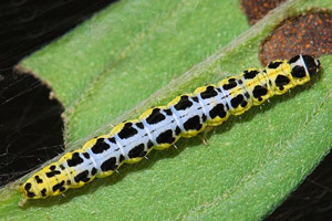 1: Jungraupe, Schweiz, Fribourg, Galmiz, 430 m, an Lithospermum officinale, 9. September 2007 (Freilandfoto: Rudolf Bryner), det. Rudolf BrynerForum