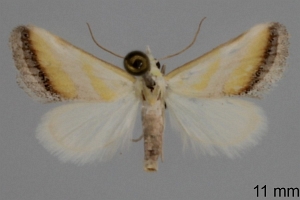 Die grauschwarzen Partien der Vorderflügel auf diesem Bild waren ursprünglich weiß oder silberweiß, chemische Umwandlung des Farbstoffs Bleiweiß (siehe im Glossar).