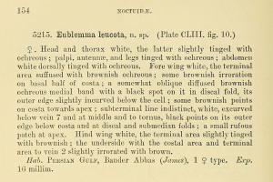 - Erstbeschreibung: Hampson, G. F. (1910-1911): Catalogue of the Lepidoptera Phalænæ in the British Museum 10: i-xix, 1-829, pl. CXLVIII-CLXXIII. London.