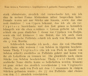 - Erstbeschreibung: Staudinger, O. (1892): Neue Arten und Varietäten von Lepidopteren des paläarktischen Faunengebiets. — Deutsche entomologische Zeitschrift Iris 4 (2): 224-339, pl. III-IV.