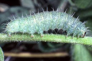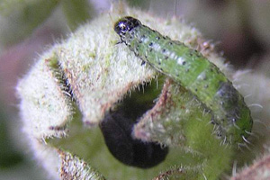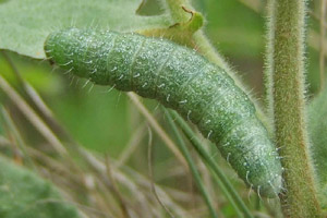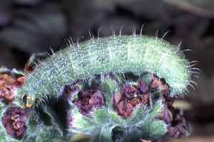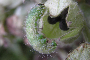 1-2: Deutschland, Thüringen, Kyffhäuser, Steinthaleben, 205 m, Raupe an Nonea pulla (Braunes Mönchskraut) 16. Mai 2009 (Fotos: Felix Hampe)Forum