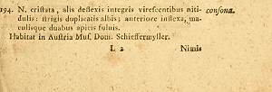 „consonus übereinstimmend, zusammenstimmend; nämlich mit den verwandten Arten bezüglich der Zeichnung.“