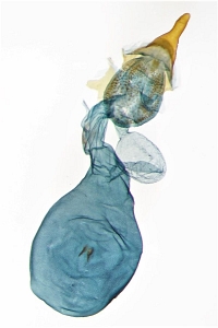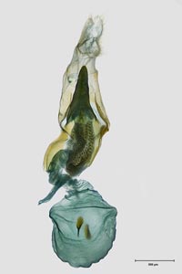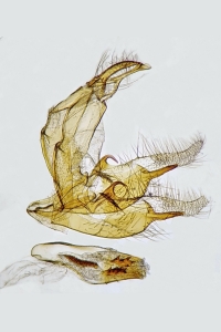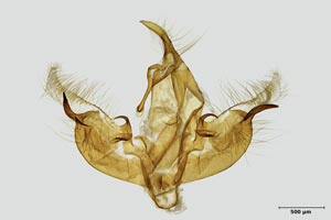 3-4: ♀, Spanien, Kanarische Inseln, Lanzarote, Haria, Finca La Fuentecilla, Ortsrand, kultivierte Trockensteppe, 340 m, 25. Februar 2020, am Licht (leg., det., prep. & fot.: Hartmuth Strutzberg), Referenz Schouten (1992) [weitere Genitalfotos im Forum]