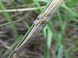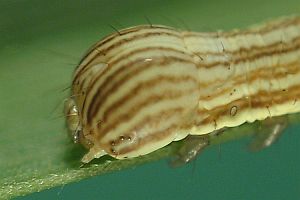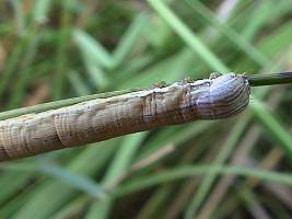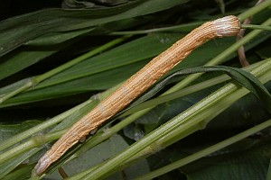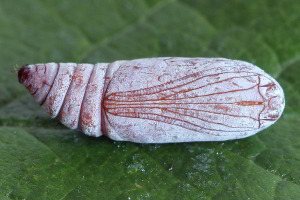 12: Deutschland, Niedersachsen, Gemeinde Apelern, Reinsdorf, große Sturmwurf- oder Kahlschlagflächen, 280 m, Abendfund der Raupe 16. August 2013, Falterschlupf 1. Juni 2014 (cult., det. & fot.: Tina Schulz)Forum