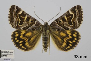 - Lectotypus-Festlegung: Mikkola, K. (1985): The Geometroidea and Noctuoidea described by Carl Clerck (Lepidoptera). — Entomologica scandinavica 16: 161-169. Ex libris Werner Wolf.