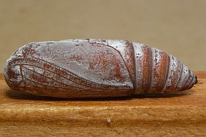 5-9: Verpuppungsgespinst, Puppe und Kremaster, Russland, Oblast Moskau, Bezirk Orechowo-Sujewo, Station Nerskaja, auf dem Rasen, leg. Raupe 20. Juli 2015, Puppe am 1. September 2015 (leg., cult., det. & Fotos: Andrey Ponomarev)Forum