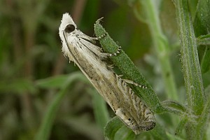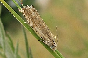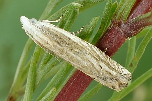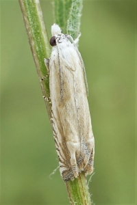 Razowski (2001: 81) fasste alles zusammen, was er in der Literatur finden konnte: "Biologie: L VIII-V, [...] Tr[ieb](Ga[llen]), St[ängel]; Serratula tinctoria, Artemisia, Helichrysum, Gnaphalium, Centaurea paniculata (Asteraceae)." Das Problem ? E. albidulana ist auch heute noch eine leicht verwechselbare Art - die Angaben zur Biologie könnten also auch zu ähnlichen Arten gehören. Und mit "Gnaphalium" war zunächst wahrscheinlich "Gnaphalium arenarium" gemeint, die Pflanze, die schon lange Helichrysum arenarium heißt.