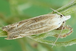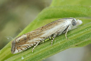Anders Sorhagen (1898: 115), der zu 4 Arten schreibt: "1038. Grapholitha lacteana Tr. In Zweiganschwellungen von Artemisia campestris im September [...] 1040. Grapholitha albidulana H.S. Nach Mann wie die vorige [...] 1118. Grapholitha Metzneriana Tr. An Artemisia Absynthium in Gallanschwellungen des mittleren der Endtriebe; August, September [...] 1121. Grapholitha incana Z. In länglichen, harten Stengelanschwellungen der Seitenzweige von Artemisia campestris; August bis Mitte September". Eucosma albidulana kannte also auch Sorhagen nicht selbst, sondern war auf einen Hinweis von Mann angewiesen - Fehlbestimmung ganz sicher nicht ausgeschlossen.
