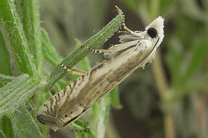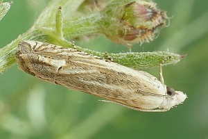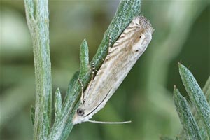 Schütze (1931: 191) handelte die Art unter "Artemisia campestris - Feldbeifuß" und dort unter der Zwischenüberschrift "An Blüten und Samen" ab; zur Art schrieb er knapp: "Raupe Mai, [...] Nach Mühlig an Artemisia campestris und Helichrysum (Sorhagen). Er kannte die Raupe also nicht selbst.