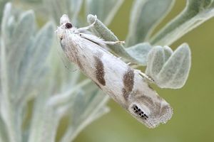 Schütze (1931: 188) meldete dann unter der Überschrift "Artemisia absinthium — Wermut": "Raupe bis Juni [...] Anfangs unter der Rinde, bald aber im Mark der Stängel bis zum Wurzelstock vordringend. Verpuppung außerhalb in weißem Kokon (Rössler)."