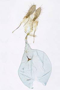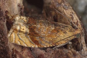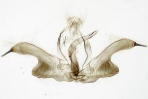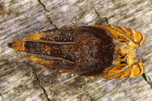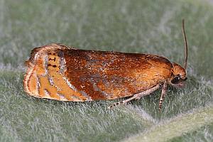 Kennel (1921: 649) fasste zusammen: "Die Raupe ist gelblichweißlich, der Kopf hellbraun, Nacken- und Analschild sind wenig von der Körperfarbe verschieden, das Nackenschildchen hat jederseits einen größeren und dahinter einen kleinen schwarzen Punkt; sie lebt im August und September zwischen versponnenen Blättern von Lonicera und Symphoricarpus. Dei Falter fliegt von Ende April bis in den Juni."